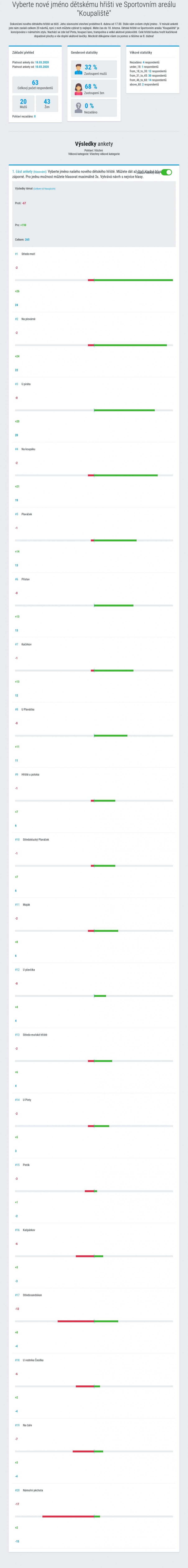 Díky této anketě, první s pomocí mobilního rozhlasu, jsme se si chtěli ověřit, jak naši občané na tuto novinku reagují. Ukázalo se, že se najde dost hlasujících a hlavně kreativních hlav, které se zapojily do vymýšlení názvu. Nyní víme, že příště uděláme hlasovací systém jednodušší. Ale této možnosti budeme využívat častěji.