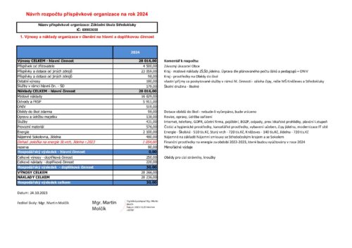 ZŠ Středokluky – Rozpočet 2024-návrh
