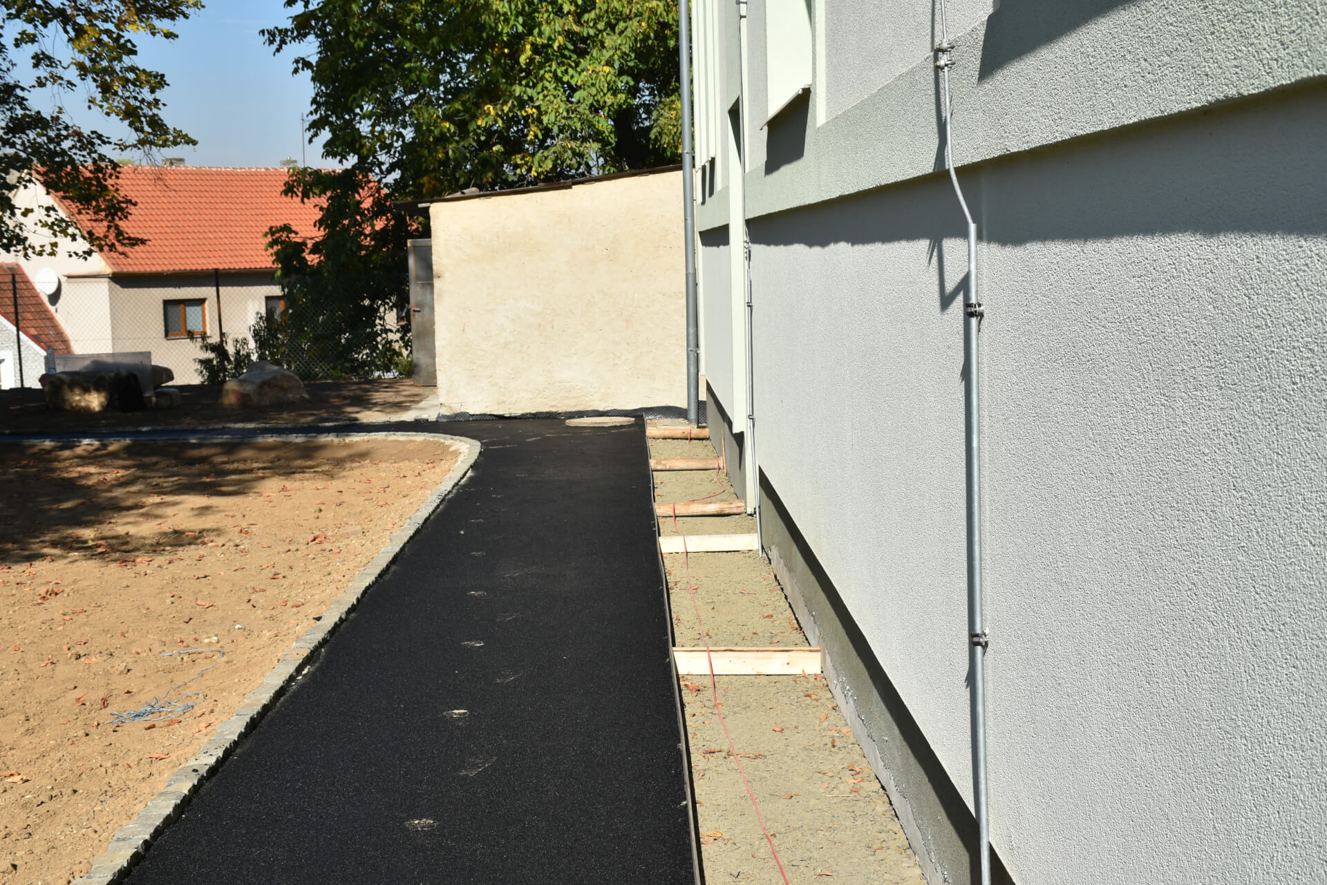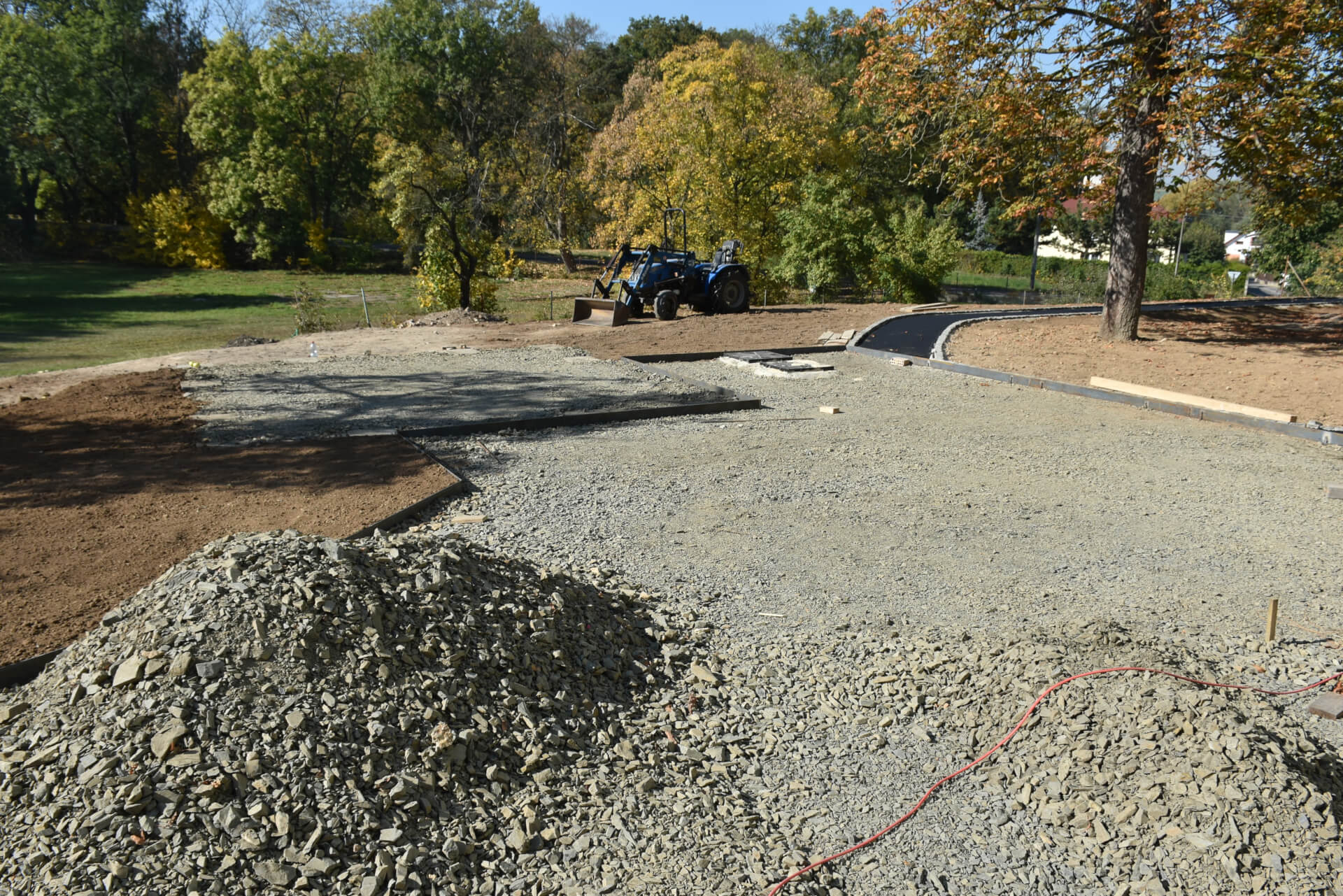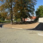 - „Náměstí“ v okolí altánu je již vymezeno a hrany dlažby jsou určeny ocelovou pásovinou pro co nejplynnější přechod.