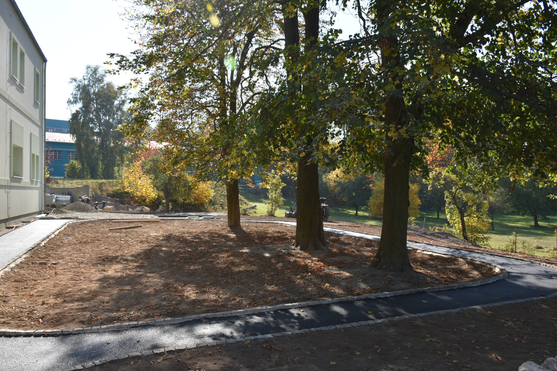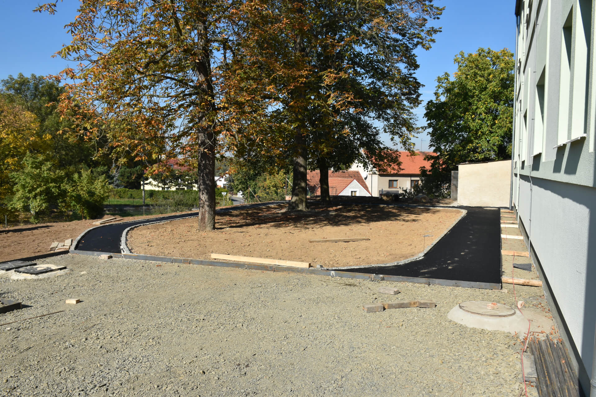 - Nakonec byl zachován záměr projektanta, aby děti mohly volně ze stezky přejíždět na „náměstí“ a zase zpátky.