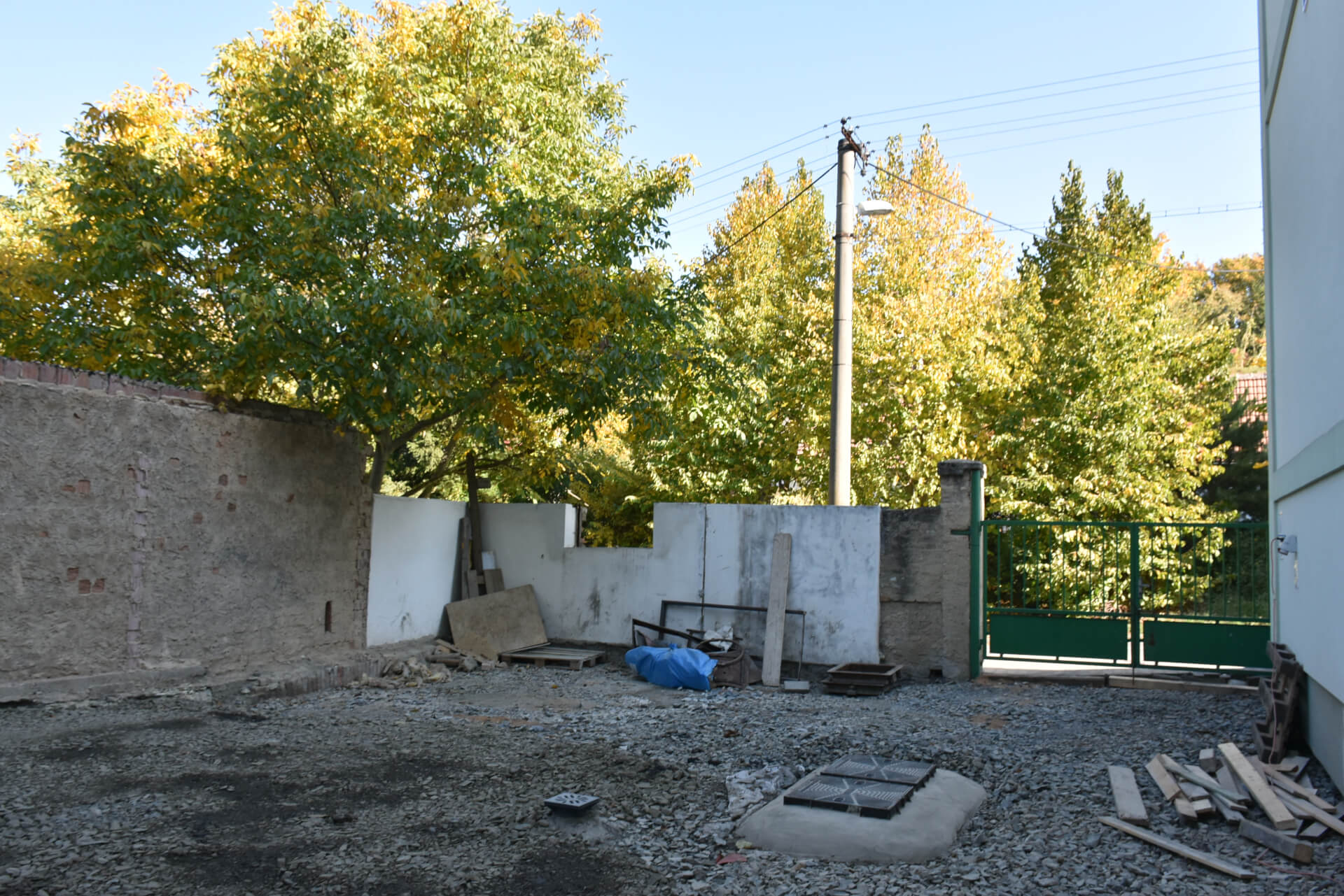 - Je připravena branka mezi sklady a budovu MŠ, která uzavře dolní parkoviště.