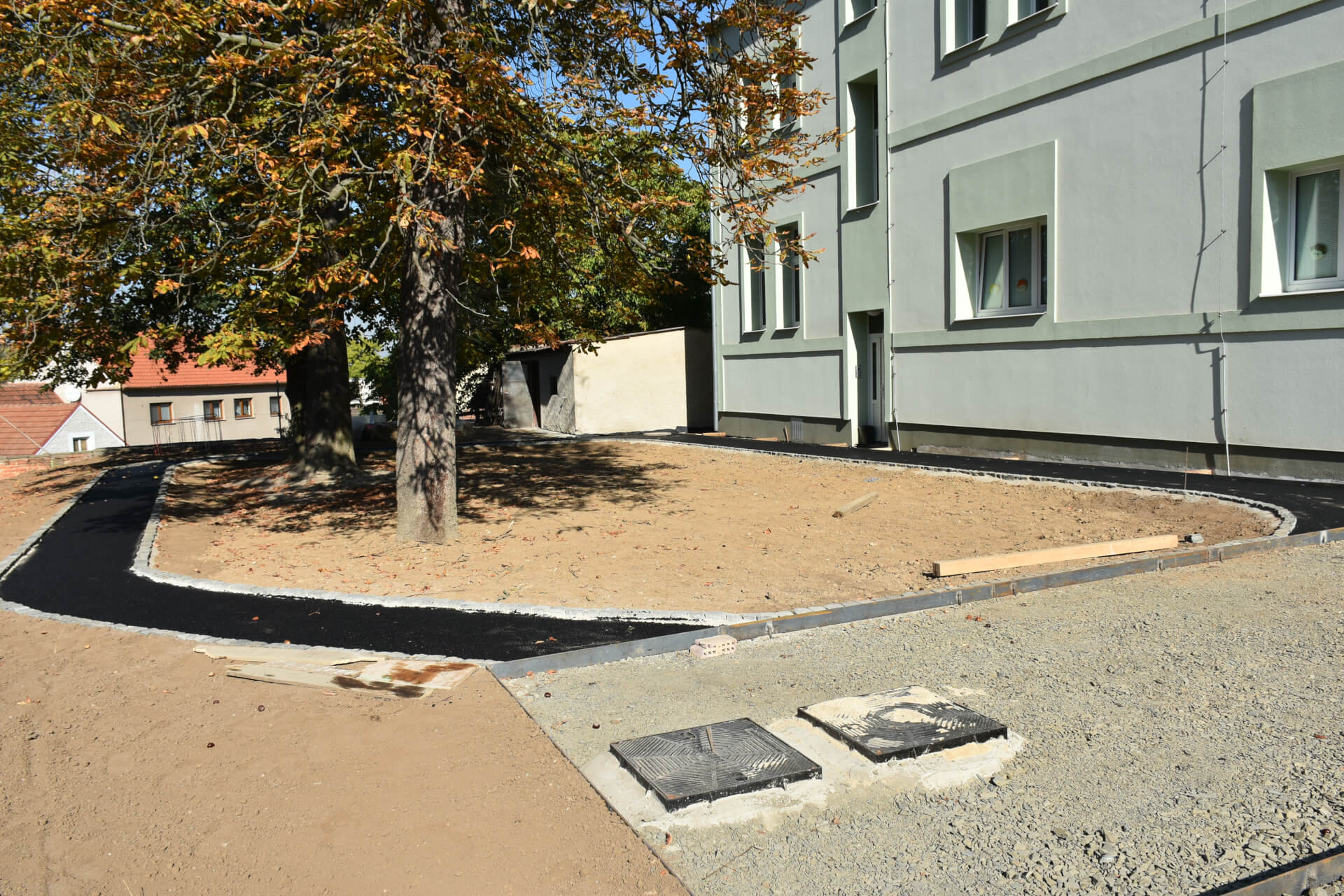 - Byly umístěny všechny poklopy kanálových vpustí jak dešťové, tak splaškové kanalizace.