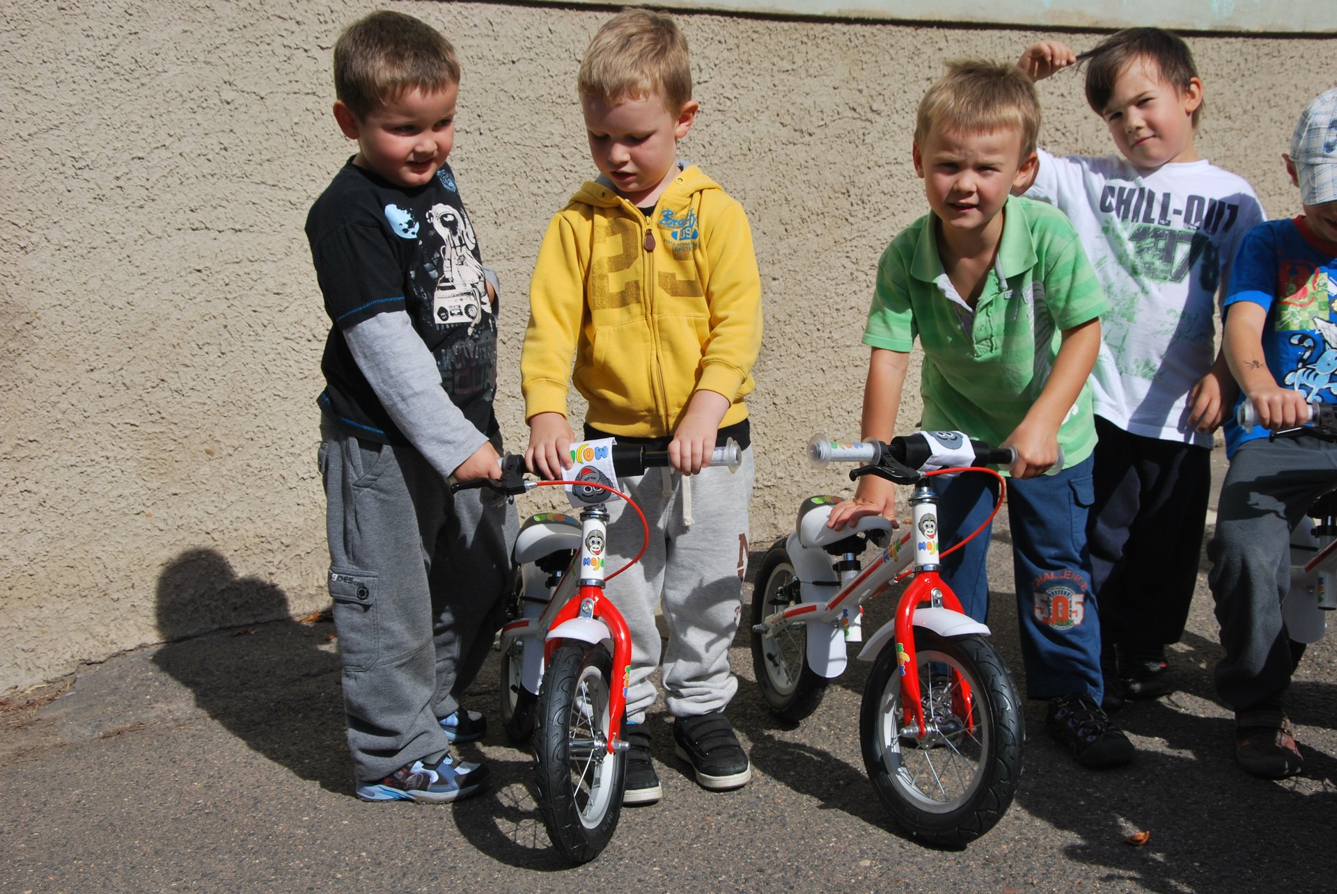 Děti z mateřské škole ve Středoklukách se mohou těšit z pěti zbrusu nových kol značky Moja, které darovala firma CykloAdam. Při přebírání měli všichni velkou radost nemohli se dočkat, až si svá kola nová kola budou moci vyzkoušet.