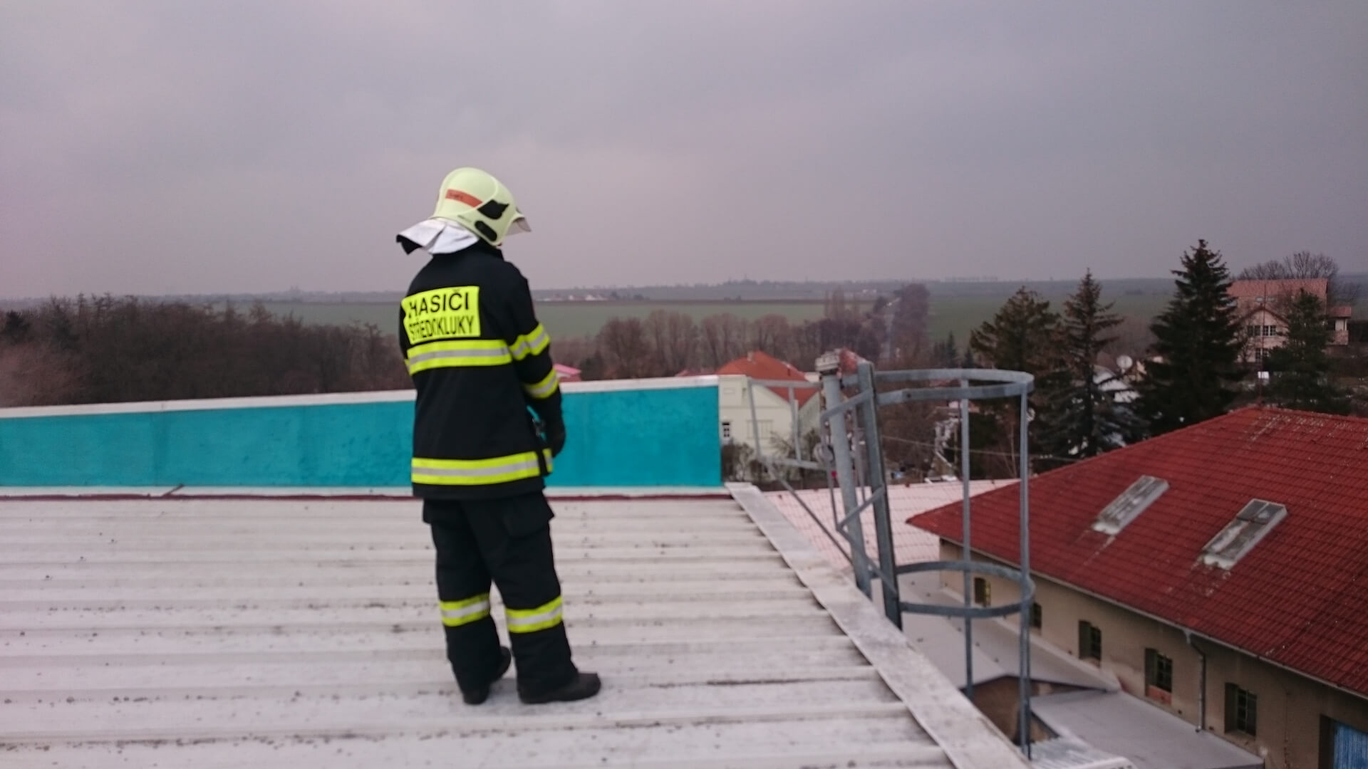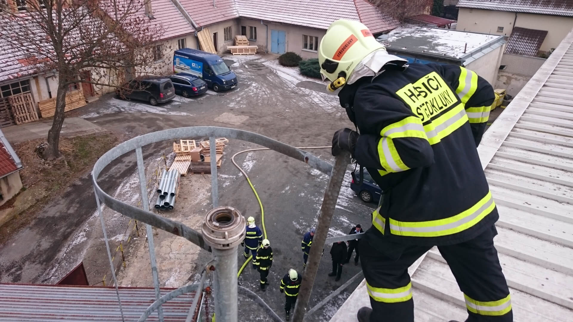 Jednotka ověřila funkčnost suchovodu na velké montážní hale přivedením dopravního vedení, které bylo zavodněno až do ústí suchovodu, na kterém nebyly zjištěny žádné závady a zařízení odpovídá požadovaným parametrům. Dále dva členové prošli pochozí plošiny na střeše haly.