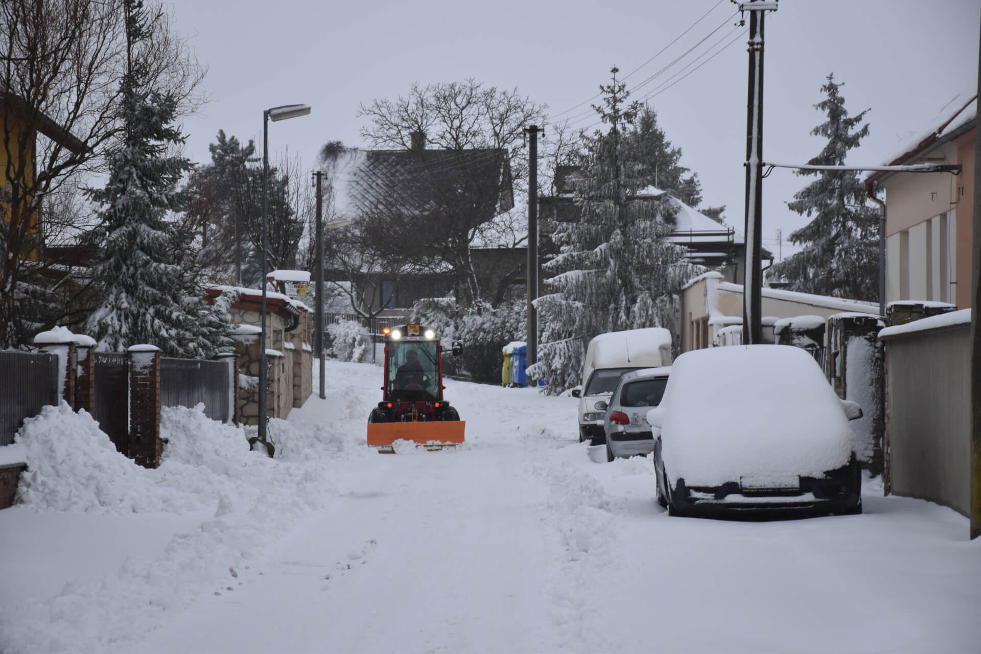 Bohužel není v našich silách, jak technických, tak finančních a ani personálních krátkodobě nárazově posilovat pracovní četu. Dříve jsme poptávali zimní údržbu od externích dodavatelů. Zájem je miziví, pokud někdo měl, nabízel začátek úklidu do 24 hodin a samozřejmě paušální platbu, která se platí, i když nebude tato služba potřeba. Zároveň odmítají jezdit do některých úzkých a příkrých ulic. Tento nedostatek obec řeší zakoupením traktoru, který ještě během neděle prohrnul všechny obecní cesty (s pomocí pana Šebka na Černovičkách) a postupným dokupováním dalších strojů.