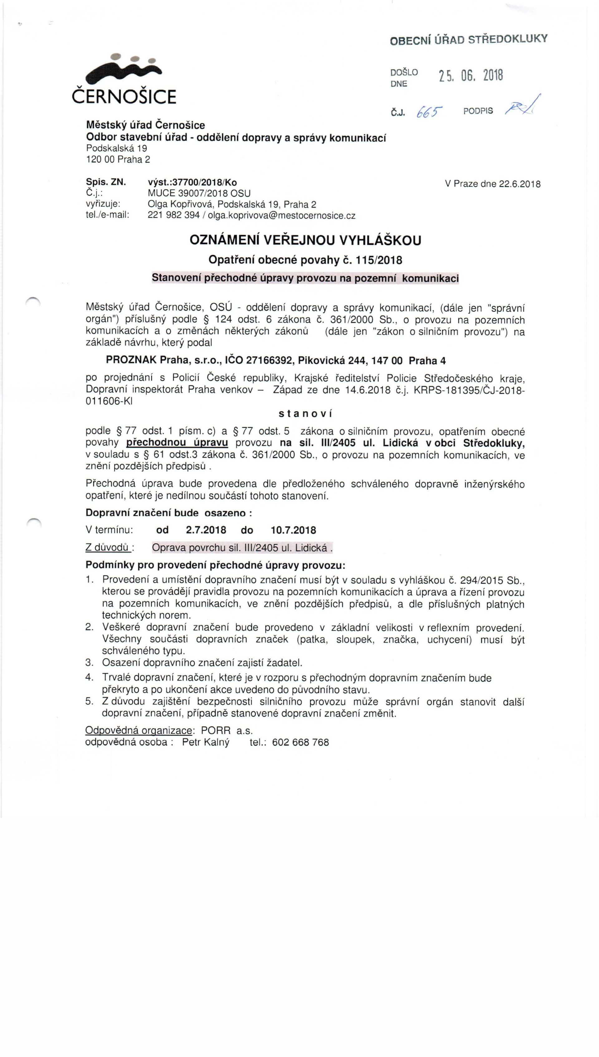 Datum oznámení: 25.června 2018