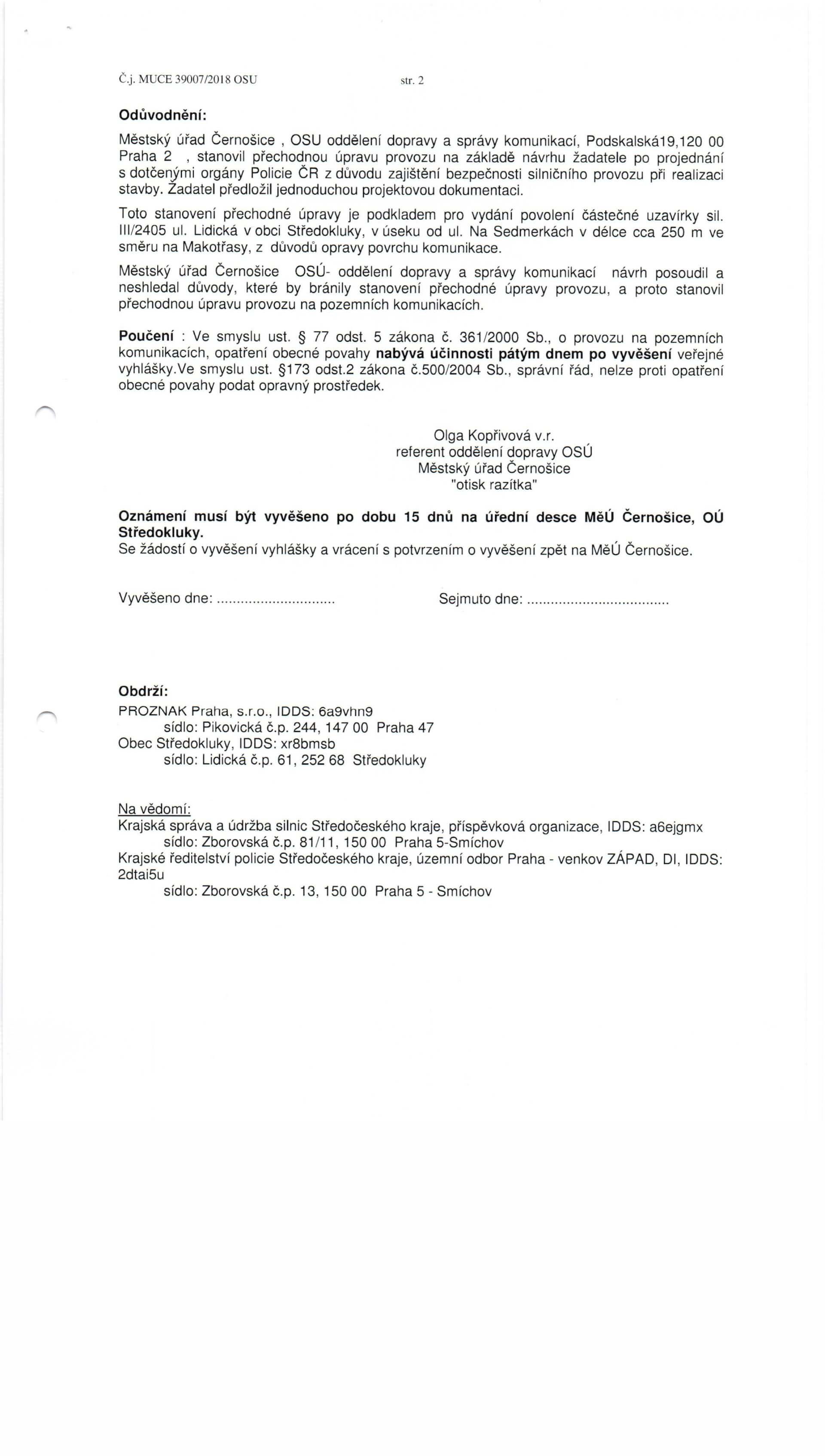 autor: MěÚ Černošice, Odbor stavební úřad – oddělení dopravy a správy komunikací