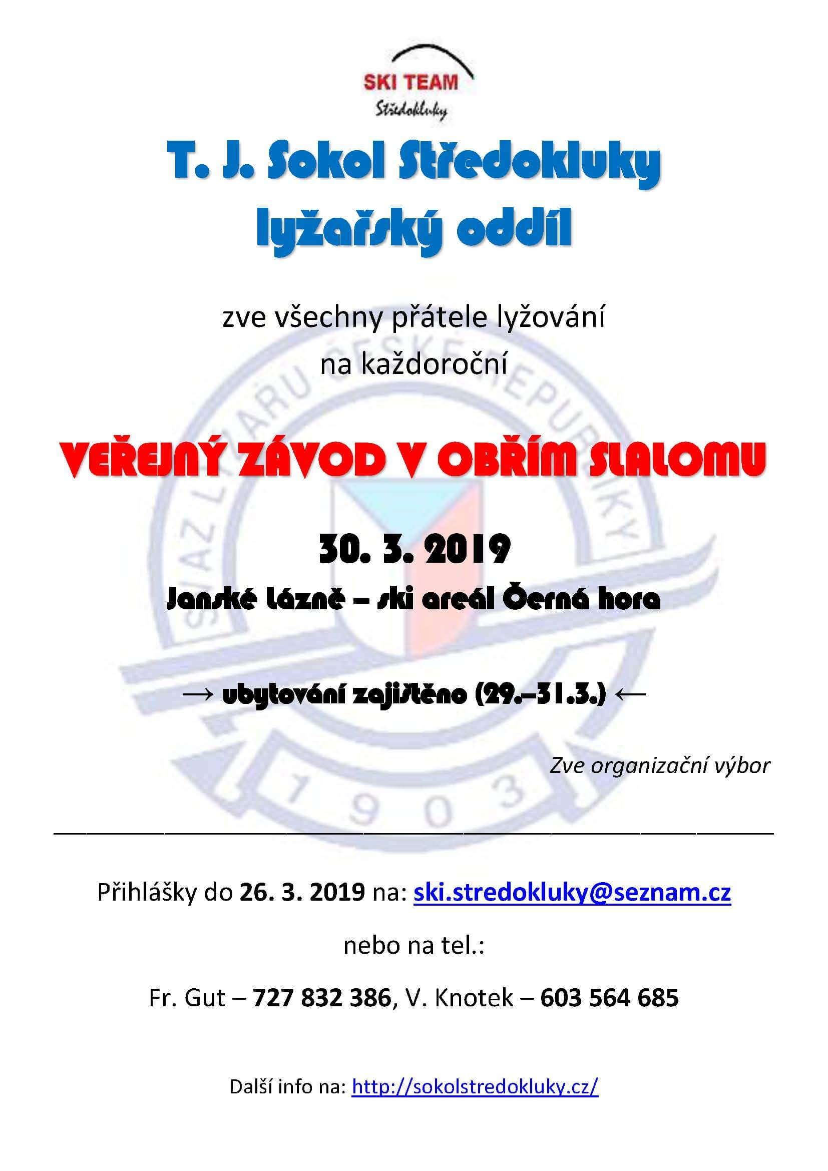 Přihlášky do 26. 3. 2019 na: ski.stredokluky@seznam.cz