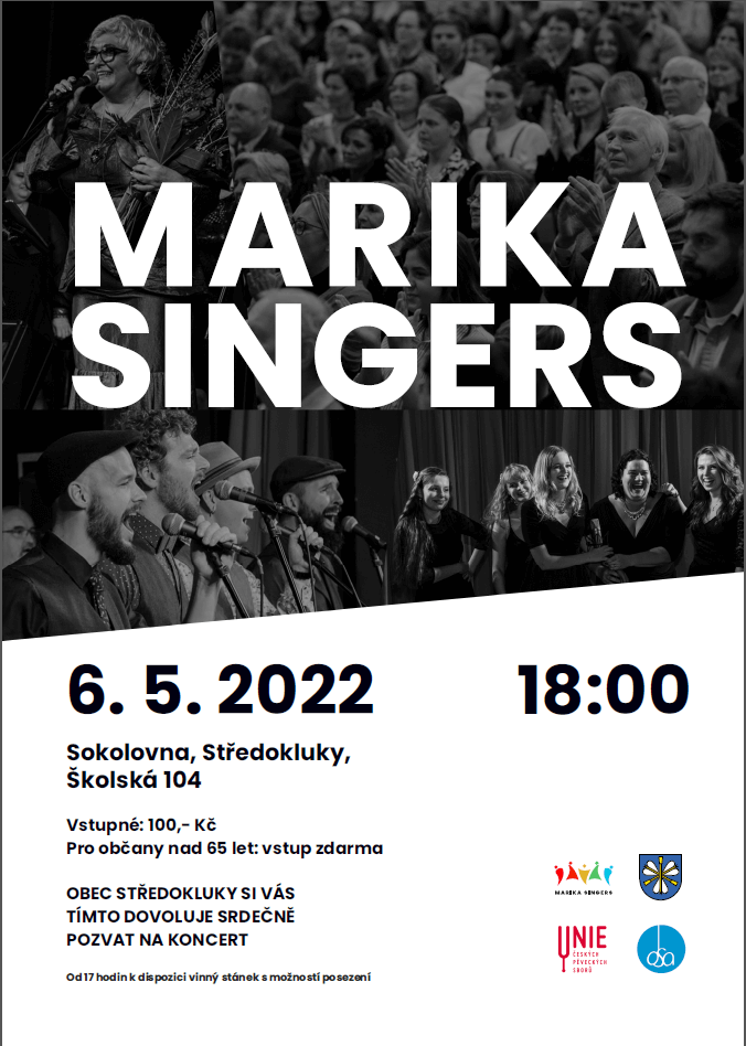 Obec Středokluky si Vás tímto dovoluje srdečně pozvat na koncert vokální skupiny MARIKA SINGERS.