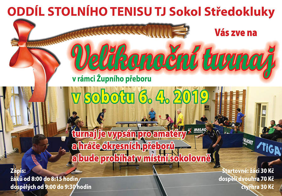 vás zve na Velikonoční turnaj v rámci Župního přeboru ve stolním tenise.