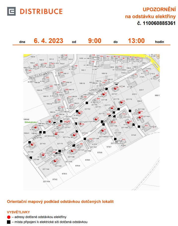 Je přílohou ke článku "Plánované přerušení dodávky el. energie"