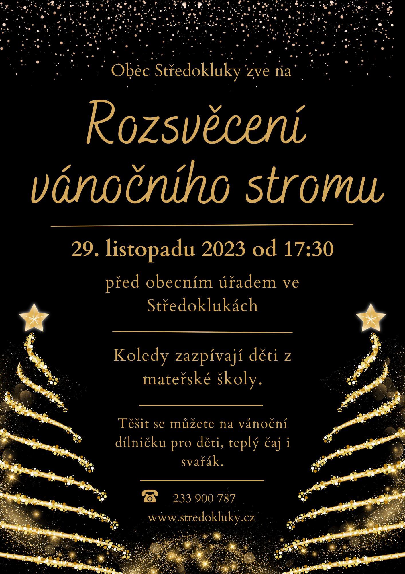 Obec Středokluky zve na Rozsvěcení vánočního stromu před obecním úřadem ve Středoklukách.