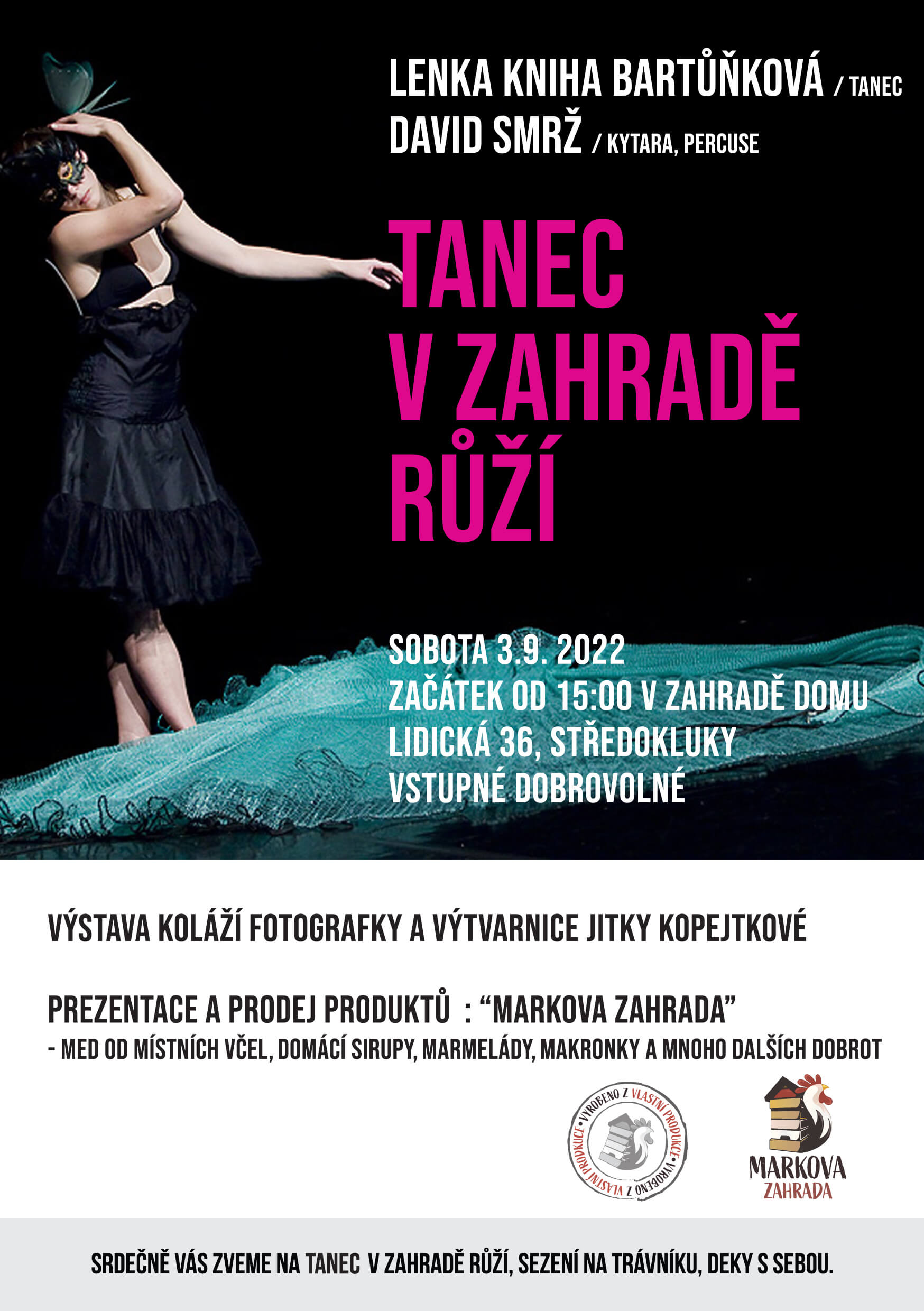 Také bude připravena výstava koláží výtvarnice Jitky Kopejtkové a prezentace a prodej produktů Markova zahrada