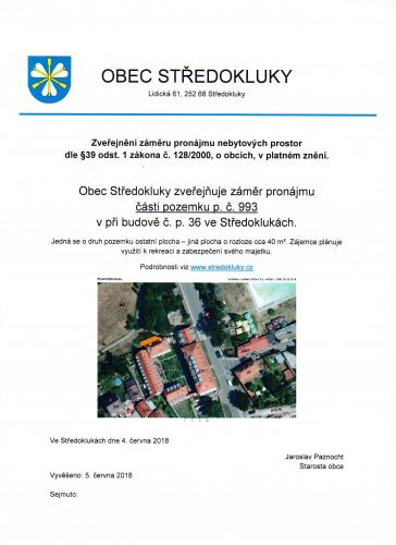 Je přílohou ke článku "Zveřejnění záměru pronájmu nebytových prostor 3"