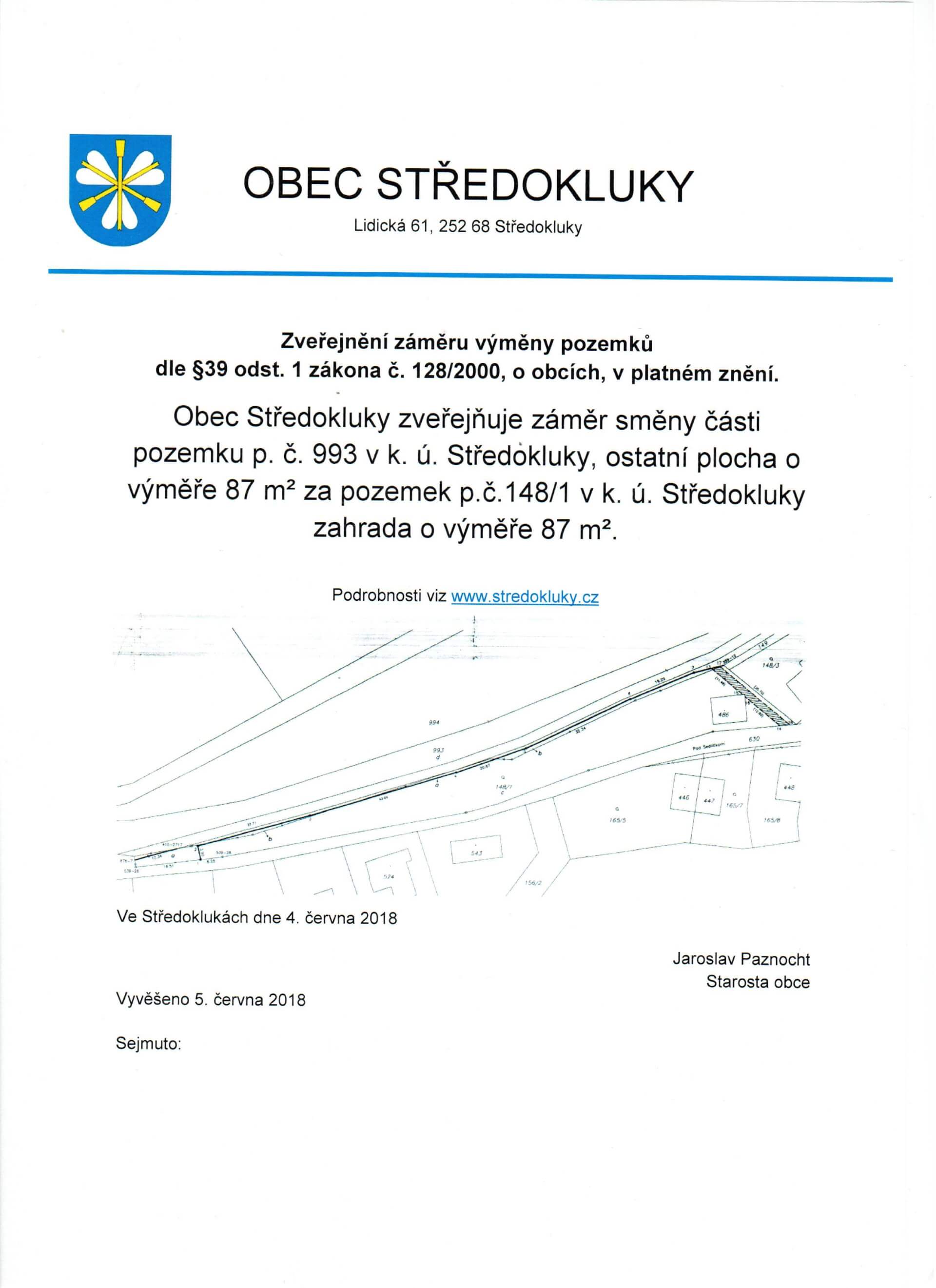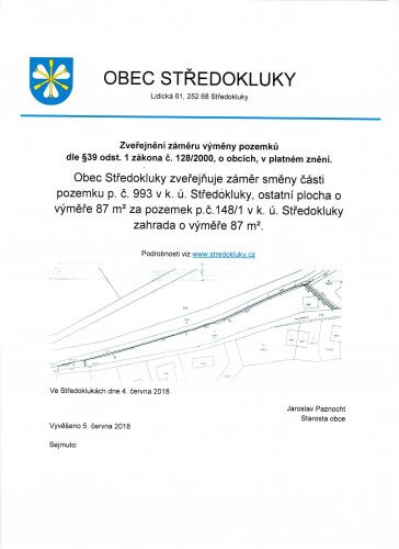 Je přílohou ke článku "Zveřejnění záměru výměny pozemků"